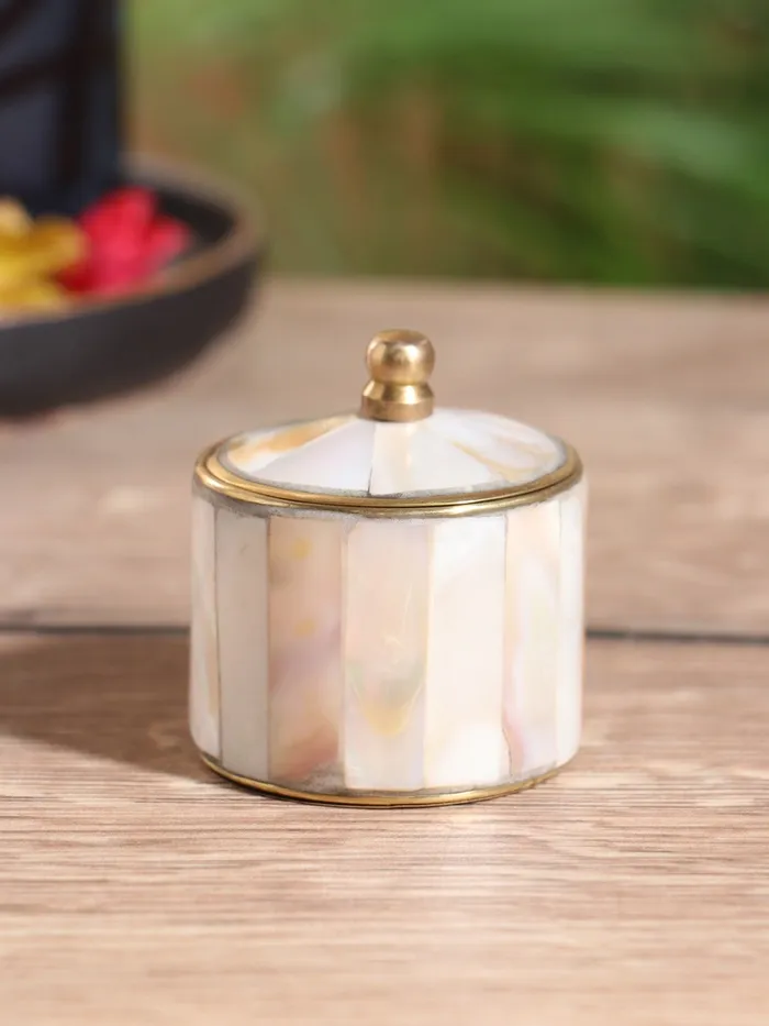 Шкатулка «Карусель», 4.5×4.5×5 см, латунь с перламутром, белая