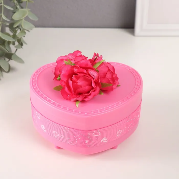 Шкатулка музыкальная механическая «Нежные розы», пластик, малиновая, 12×13.5×10.5 см