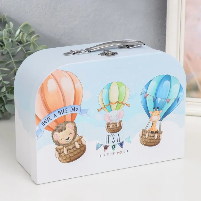 Шкатулка для украшений «Сундук. Зверята на на воздушных шарах», картон, 25×10×18.5 см