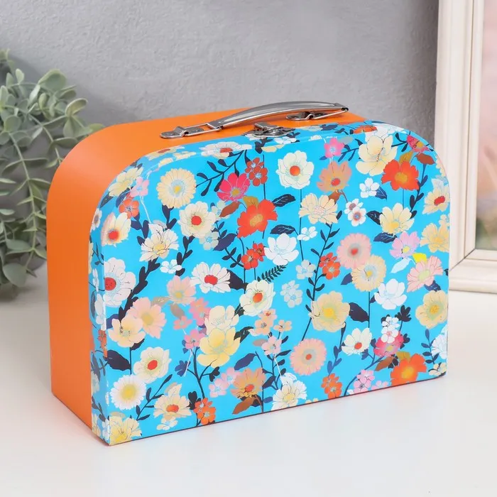 Шкатулка для украшений «Сундук. Цветы на синем», картон, 25×10×18.5 см