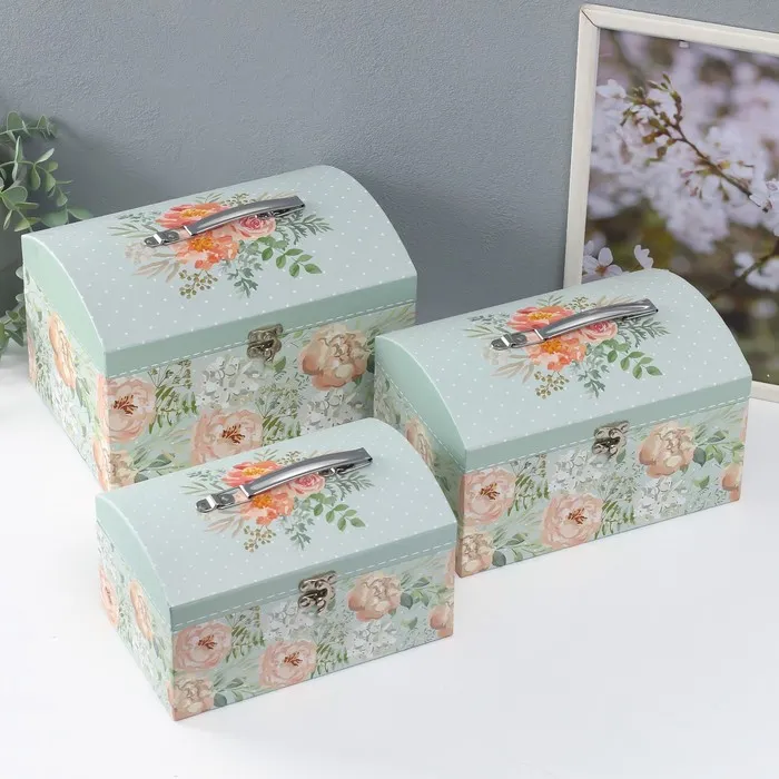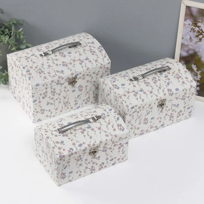 Набор шкатулок для украшений «Сундук. Цветочная», картон, 3 шт.