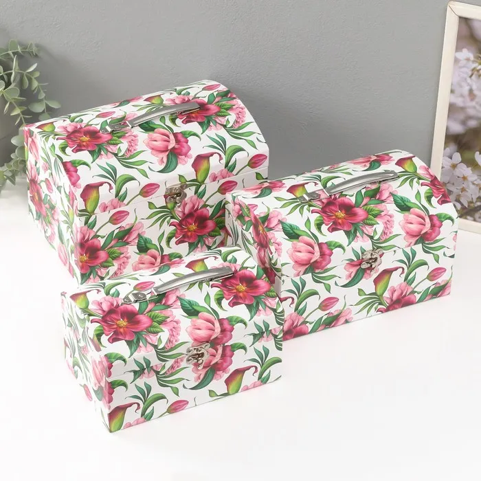 Набор шкатулок для украшений «Сундук. Крупные бутоны», картон, 3 шт.