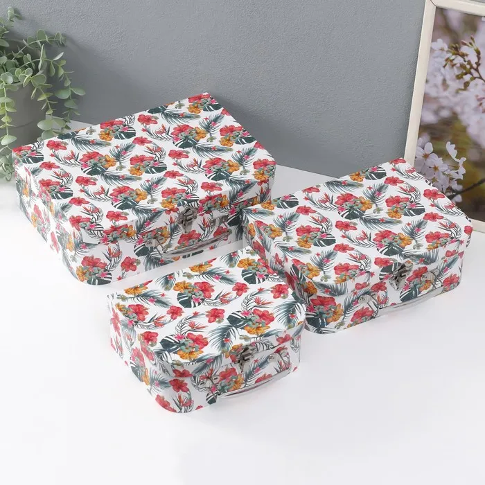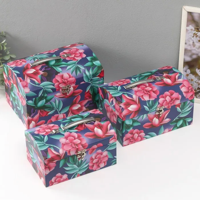 Набор шкатулок для украшений «Сундук. Яркие цветы», картон, 3 шт.