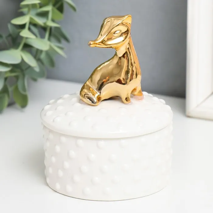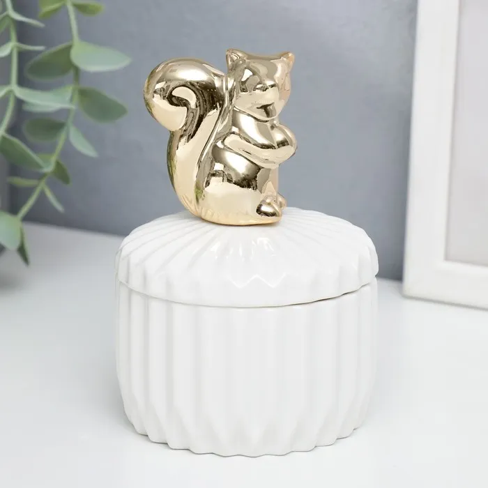 Шкатулка для украшений «Золотая белочка», керамика, белый рельеф, 12×8.2×8.2 см