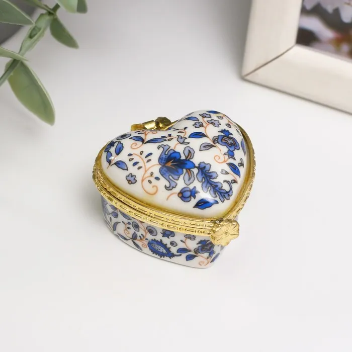Шкатулка для украшений «Сердце. Синие сказочные цветы», керамика, 4.2×4.7×3 см