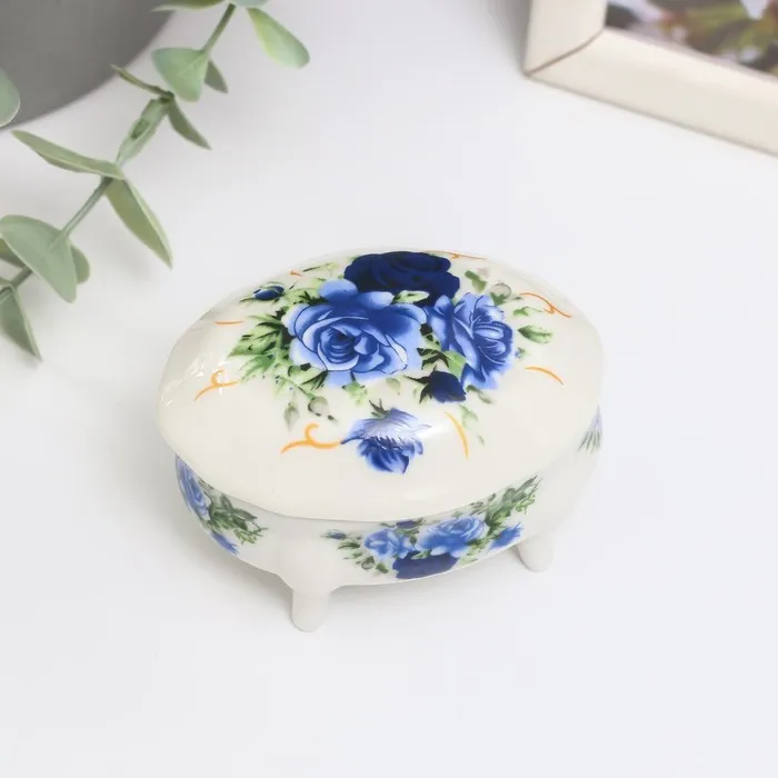 Шкатулка для украшений на ножках «Синие розы», керамика, 6.1×7.7×4.8 см