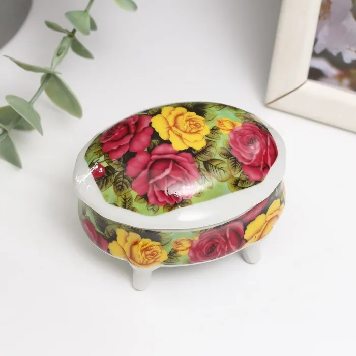 Шкатулка для украшений на ножках «Куст с розами», керамика, 6.1×7.7×4.8 см