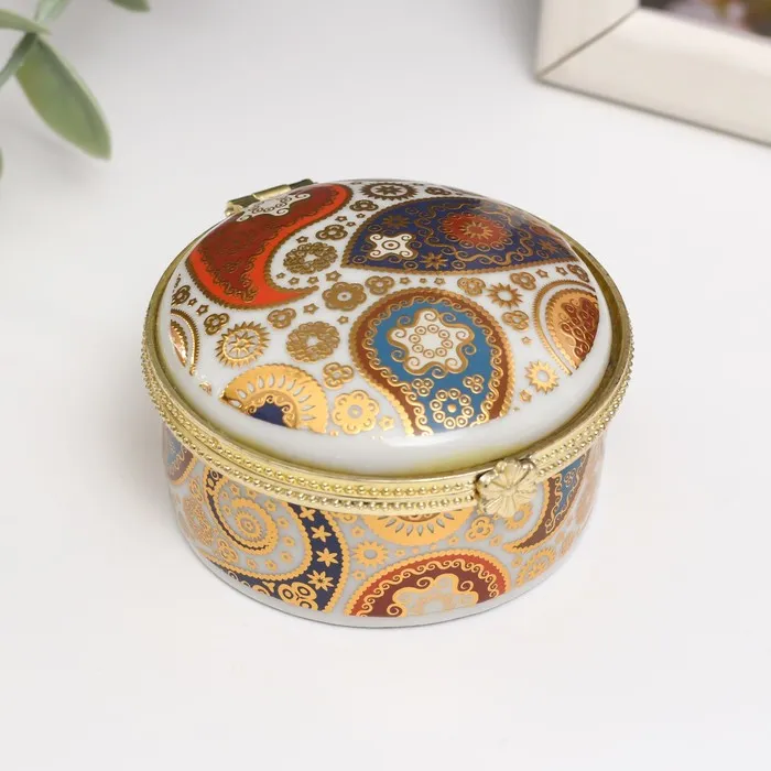Шкатулка для украшений круглая «Узор пейсли», керамика, 6.2×6.2×3.3 см