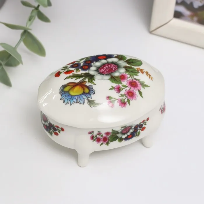 Шкатулка для украшений на ножках «Букет цветов», керамика, 6.1×7.7×4.8 см