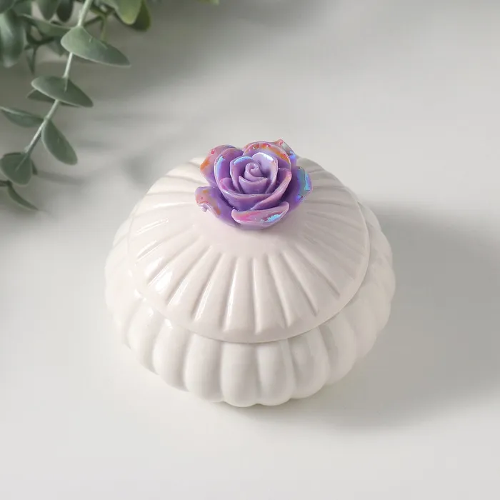 Шкатулка для украшений «Цветок розы», керамика, сирень перламутр, 7.5×7.5×6.5 см
