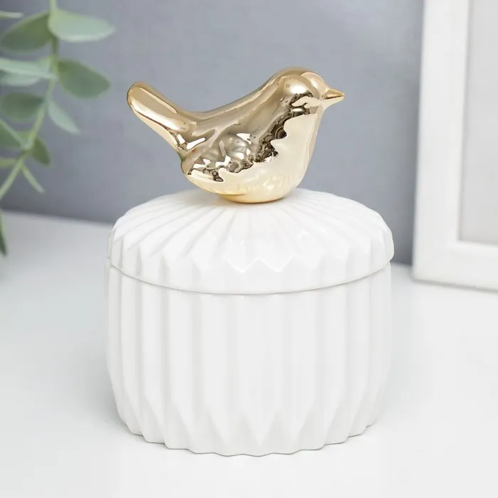 Шкатулка для украшений «Золотой воробушек», керамика, белый рельеф, 11×8.2×8.2 см