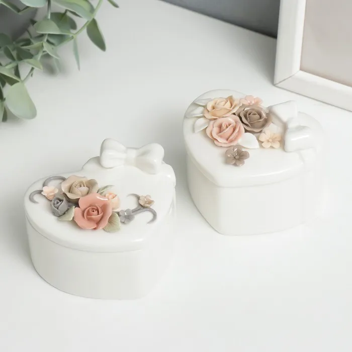 Шкатулка для украшений «Сердце. Бант и розы», керамика, 5.8×8×6.8 см, МИКС