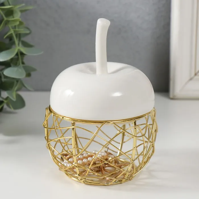 Шкатулка для украшений «Яблочко», керамика, металл, белая, 8.5×8.5×12 см