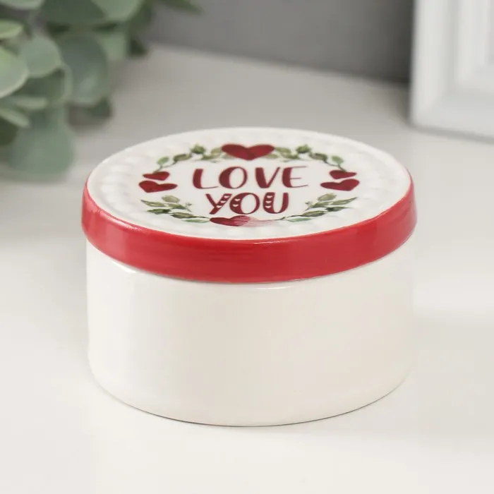 Шкатулка для украшений «Растительный венок с сердцами love you», керамика, 7.5×7.5×4.5 см