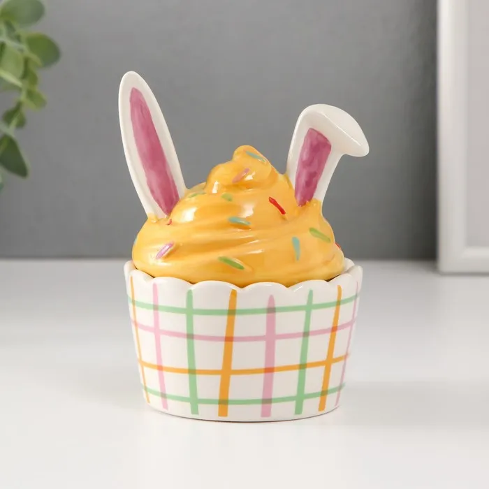 Шкатулка для украшений «Пирожное с заячьими ушками», керамика, 8.8×8.5×12 см