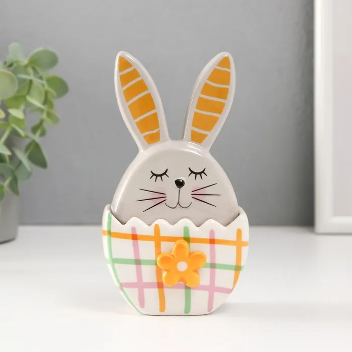 Шкатулка для украшений «Зайка в яйце», керамика, серо-жёлтый, 8×5.4×14.2 см