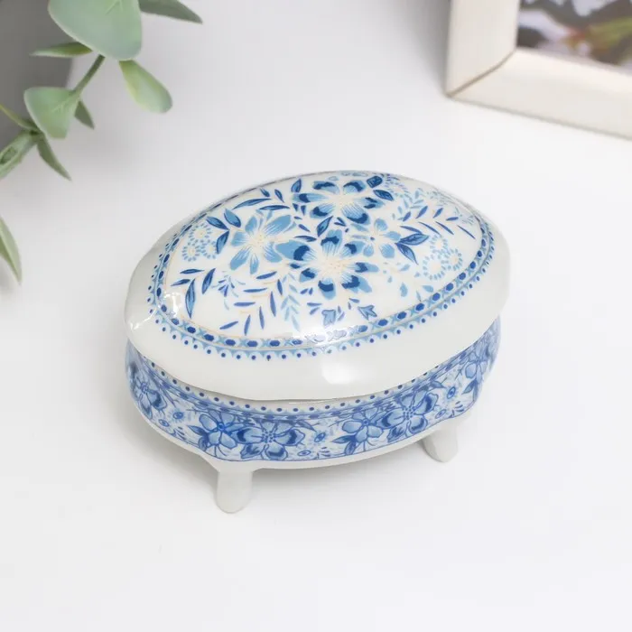 Шкатулка для украшений на ножках «Синие цветочки», керамика, 6.1×7.7×4.8 см