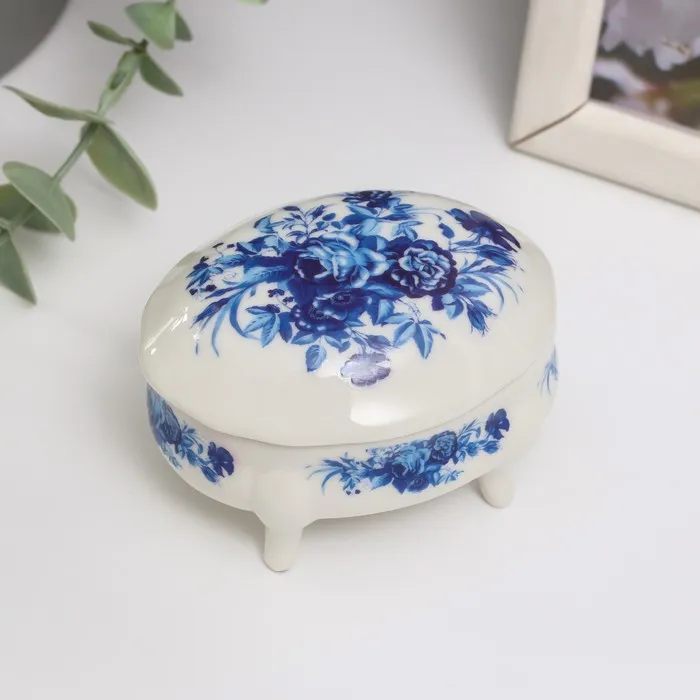 Шкатулка для украшений на ножках «Синие цветы», керамика, 6.1×7.7×4.8 см