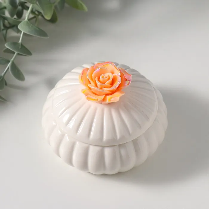 Шкатулка для украшений «Цветок розы», керамика, персик перламутр, 7.5×7.5×6.5 см