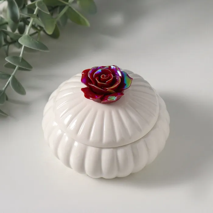 Шкатулка для украшений «Цветок розы», керамика, алый перламутр, 7.5×7.5×6.5 см