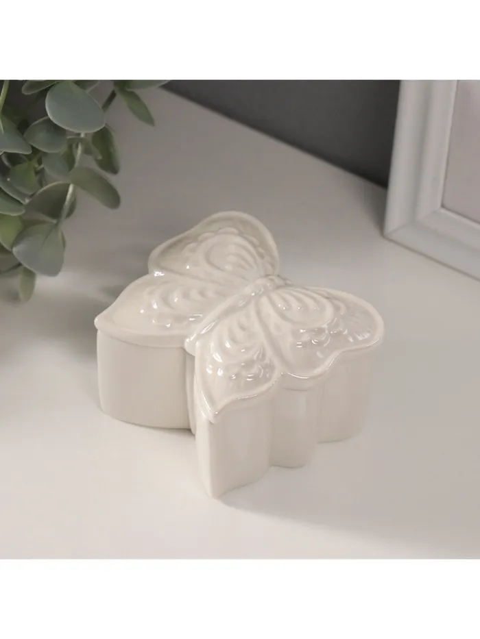 Шкатулка для украшений «Бабочка фигурная», керамика, белый перламутр, 7.3×7.3×4.5 см