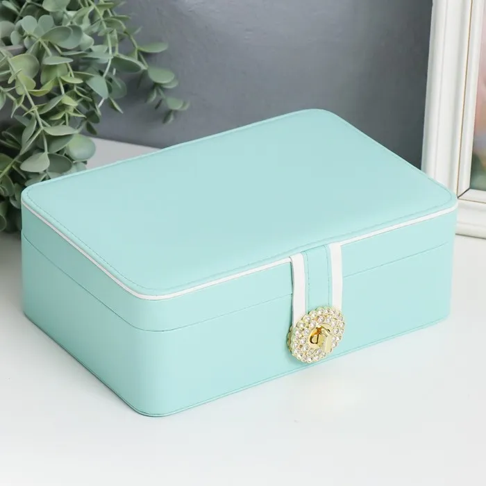 Шкатулка для украшений «С пряжкой», с зеркалом, искусственная кожа, мятная, 24×18.5×9см