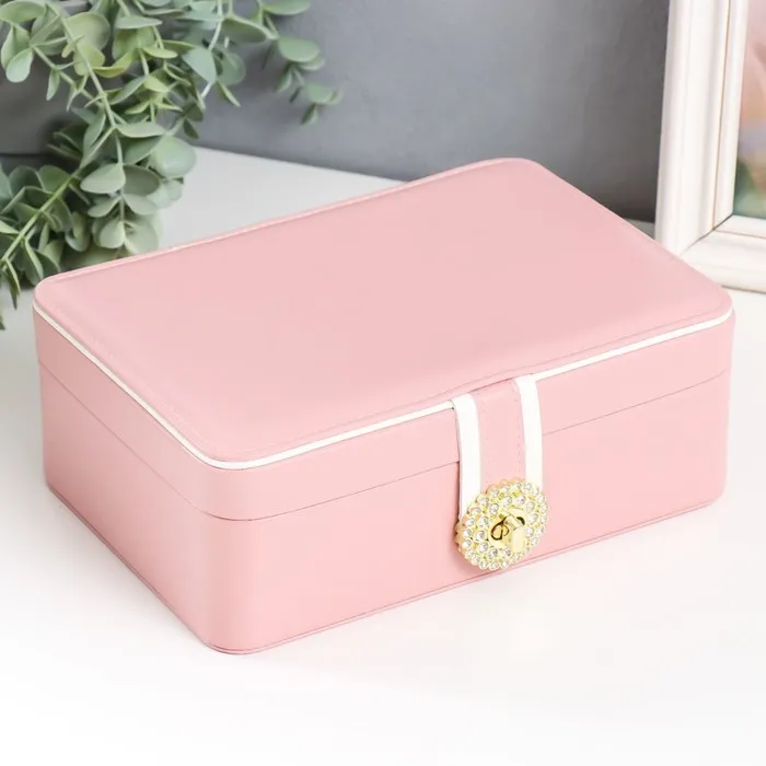 Шкатулка для украшений «С пряжкой», с зеркалом, искусственная кожа, розовая, 24×18.5×9 см