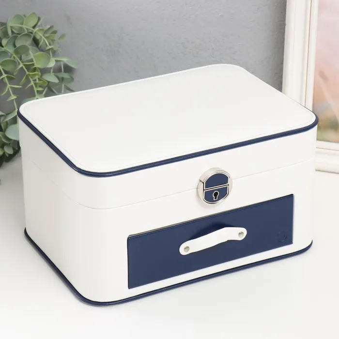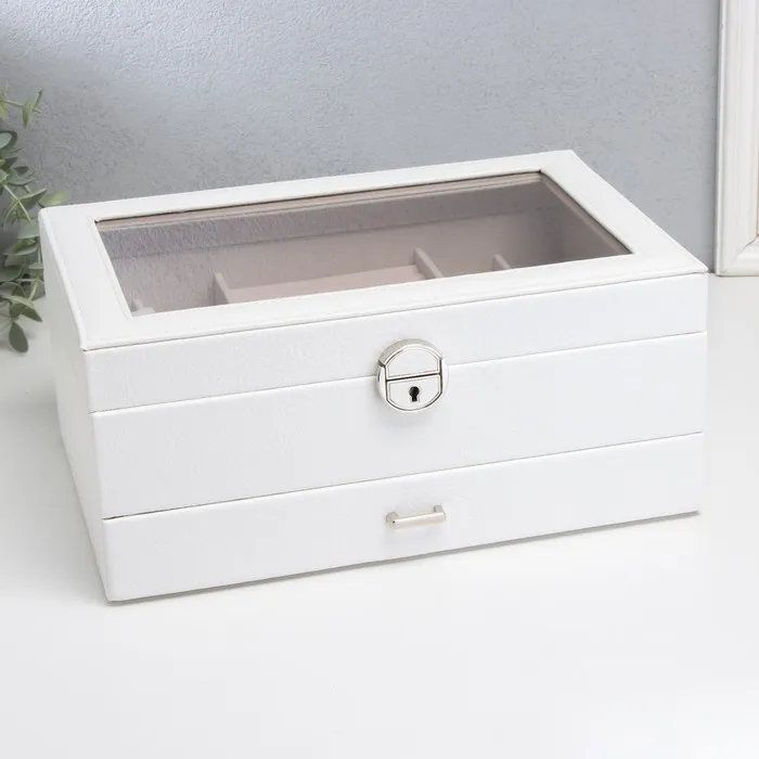 Шкатулка кожзам для украшений "Эльба. Два яруса" белая 25х18х14 см