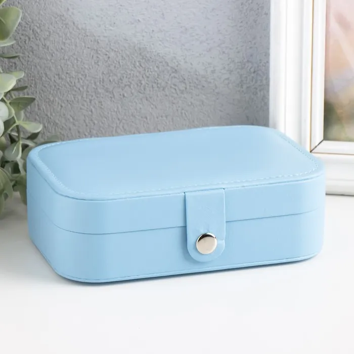 Шкатулка кожзам для украшений "Матовая гладь" голубая 16х11х5 см
