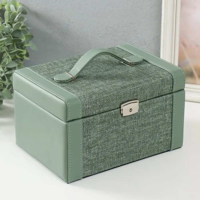 Шкатулка для украшений «Эльба. Два яруса», искусственная кожа, зелёная, 25×18×14 см