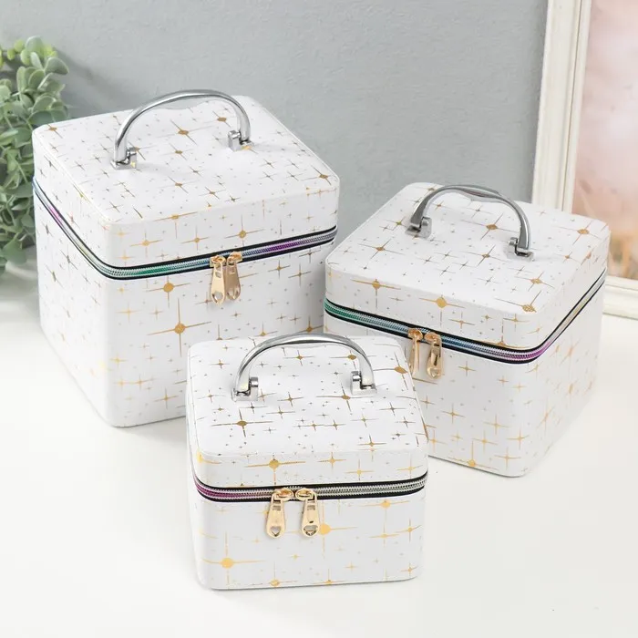 Набор шкатулок для украшений с зеркалом «Вспышка на белом», 3 шт., искусственная кожа
