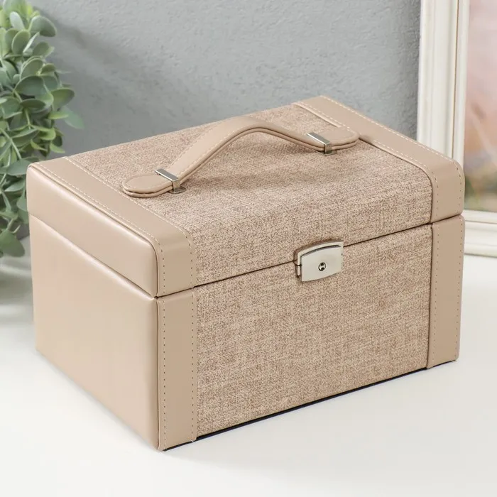 Шкатулка для украшений «Бархатная кожа», с зеркалом, искусственная кожа, песочная, 10×18×6 см