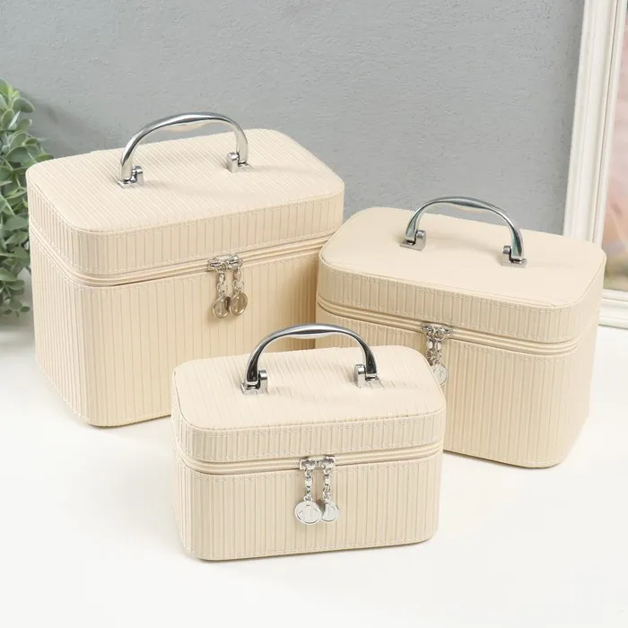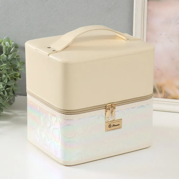 Шкатулка для украшений, косметики «Сердца голография. Этажи», искусственная кожа, кофе с молоком, 24.5×20.5×27 см