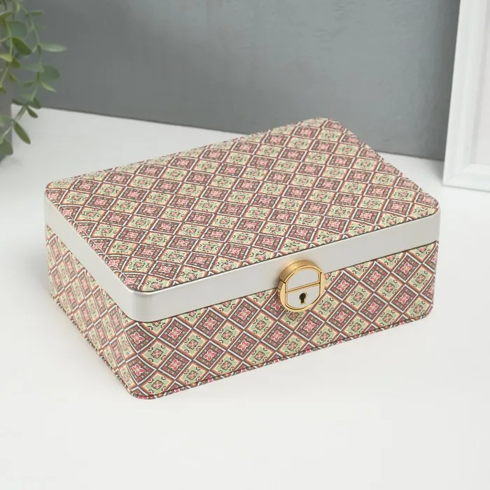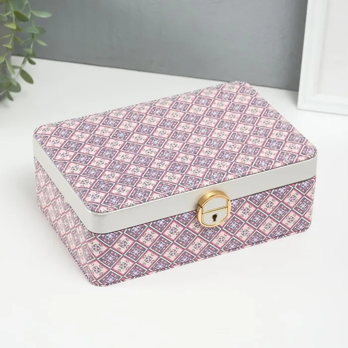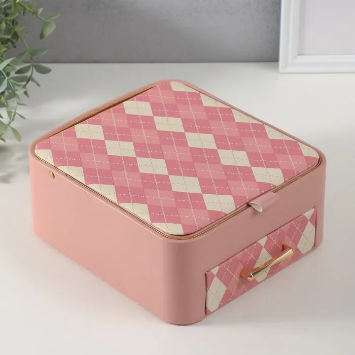 Шкатулка для украшений «Клетка», с зеркалом, искусственная кожа, розовая, 20×22.5×9.5 см