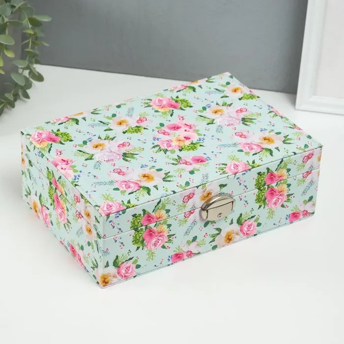 Шкатулка для украшений «Розы на зелёном», искусственная кожа, с замком, 18×27×9 см