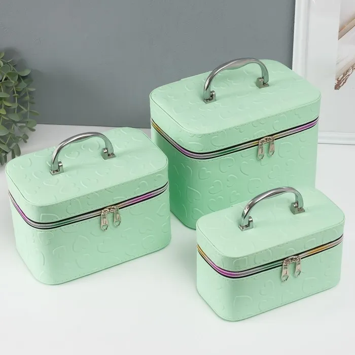 Набор шкатулок для украшений с зеркалом «Сердца», 3 шт., искусственная кожа, св. зелёная