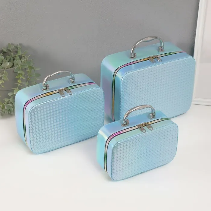 Набор шкатулок для украшений с зеркалом «Плетение», 3 шт., искусственная кожа, голубая