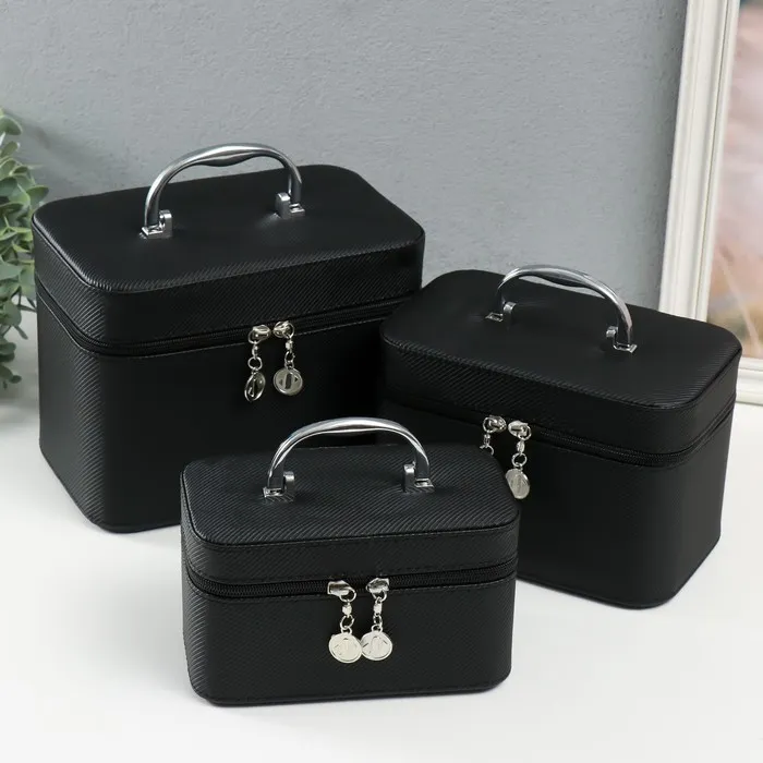 Набор шкатулок для украшений с зеркалом «Штрих. Чёрный», 3 шт., искусственная кожа