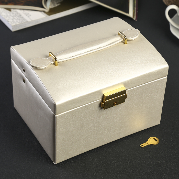 Шкатулка кожзам для украшений "Жемчужный молочный" 12,3х17,3х13,7 см