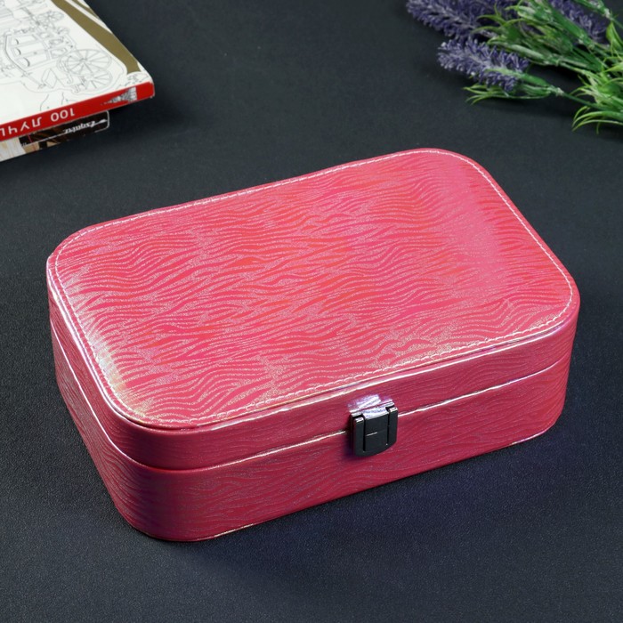 Шкатулка для украшений и часов 1 отделение «Волна с переливами», искусственная кожа, ярко-розовая, 6.5×22×15 см