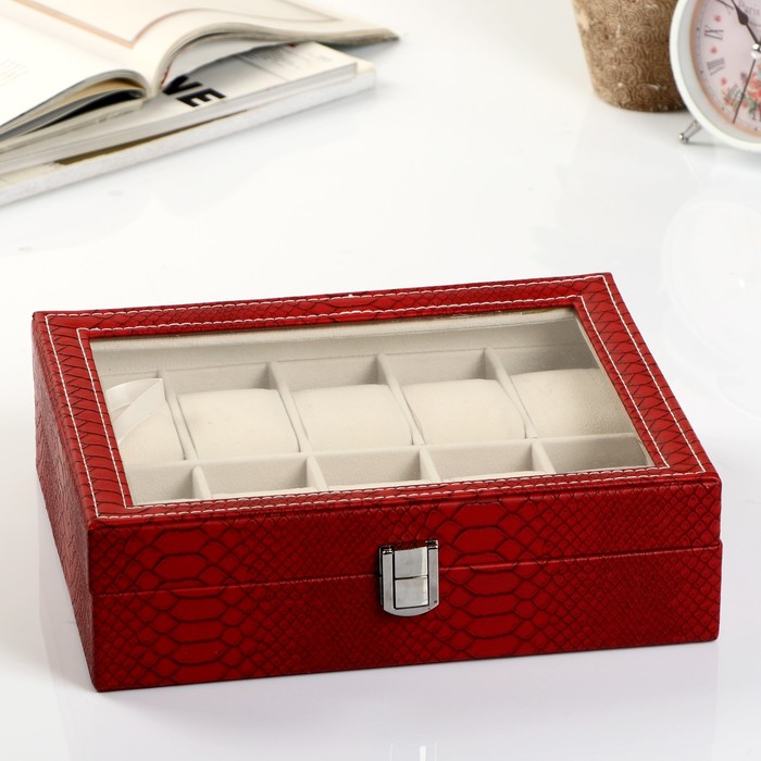 Шкатулка для часов 10 отделений «Питон бордовый с прожилками», искусственная кожа, 7.5×25.5×20 см