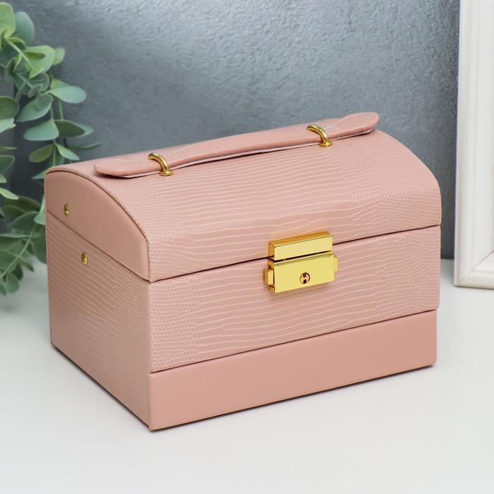 Шкатулка кожзам для украшений "Кожа змеи" нежно-розовая чемодан 9,5х16,5х24
