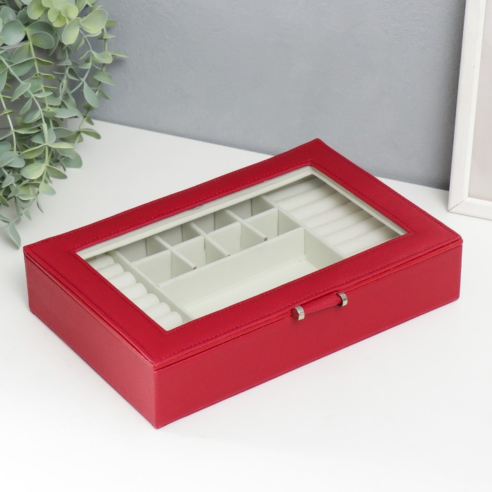 Шкатулка для украшений «Хэмптонс», с зеркалом, искусственная кожа, с замком, красная, 5.5×27×18 см