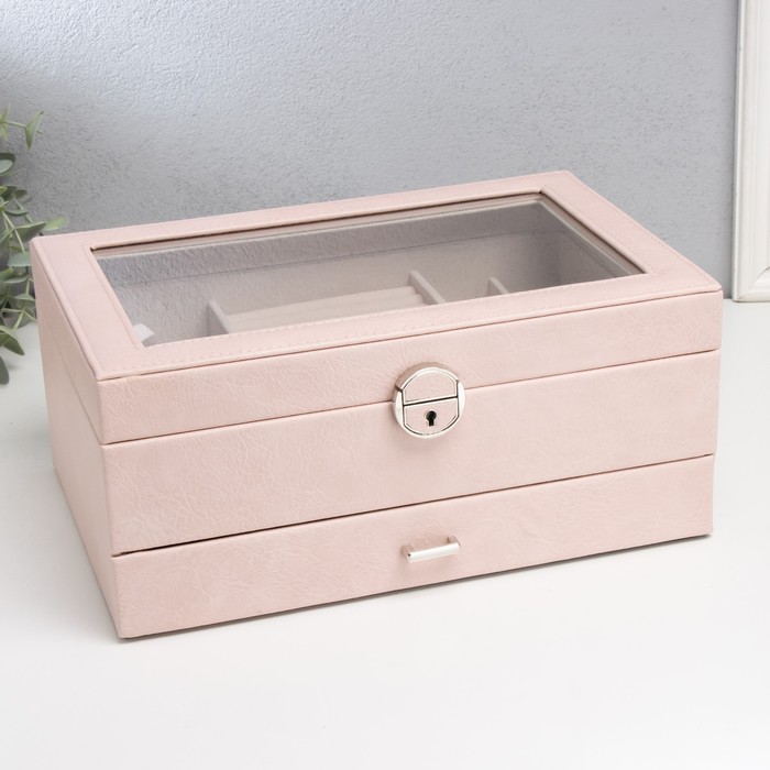 Шкатулка кожзам для украшений "Кабрина" розовая 30,5х20х13,5 см
