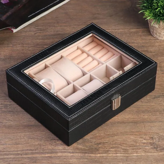 Шкатулка для украшений и часов 4 отделения «Чёрный чемоданчик», искусственная кожа, 9×32.5×26 см