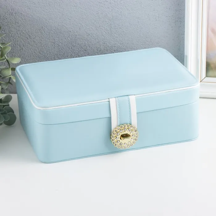 Шкатулка кожзам для украшений "С пряжкой" голубая 24х18,5х9 см