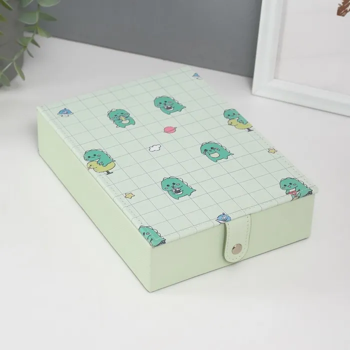 Шкатулка для украшений «Динозаврики», с зеркалом, искусственная кожа, зелёная, 15×21.5×5.5 см