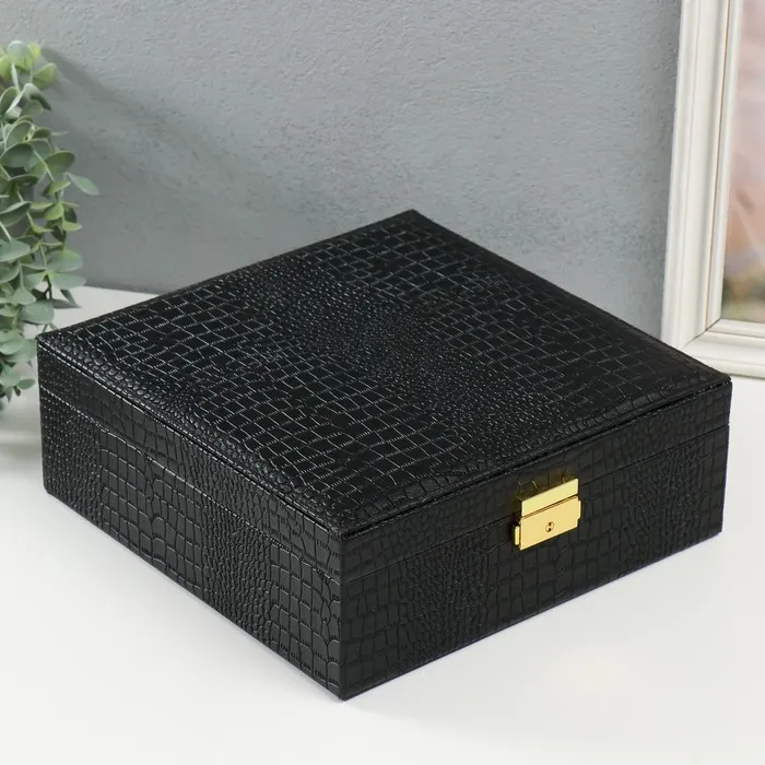 Шкатулка для украшений и часов 2 отделения «Кожа крокодила», искусственная кожа, чёрная, 26×26.5×10 см
