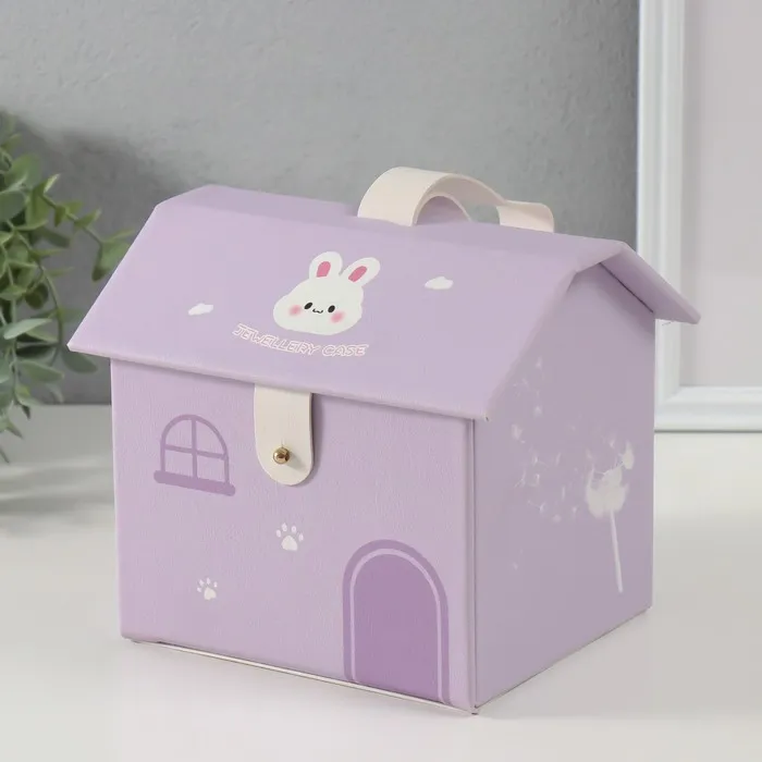 Шкатулка для украшений «Домик. Зайка», искусственная кожа, сирень, 16.5×19×16.5 см