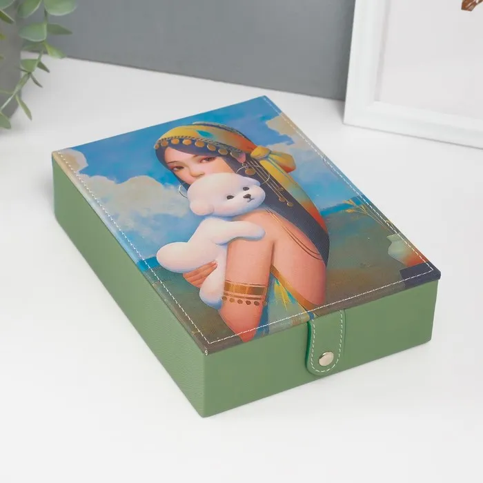 Шкатулка для украшений «Девушка с пуделем», с зеркалом, искусственная кожа, 15×21.5×5.5 см